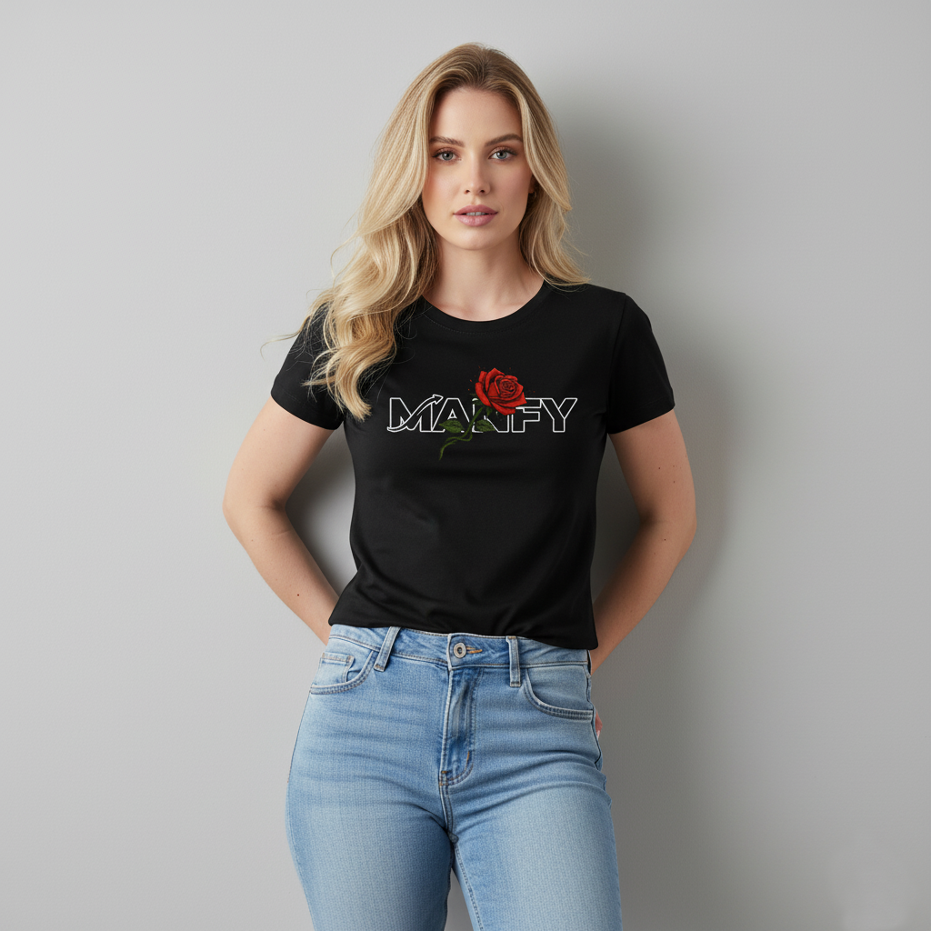 Vista a sua essência com a camisa "MANFY". O design minimalista em preto contrasta com a rosa vibrante, criando um visual de impacto e mistério. Perfeita para quem busca estilo e autenticidade.