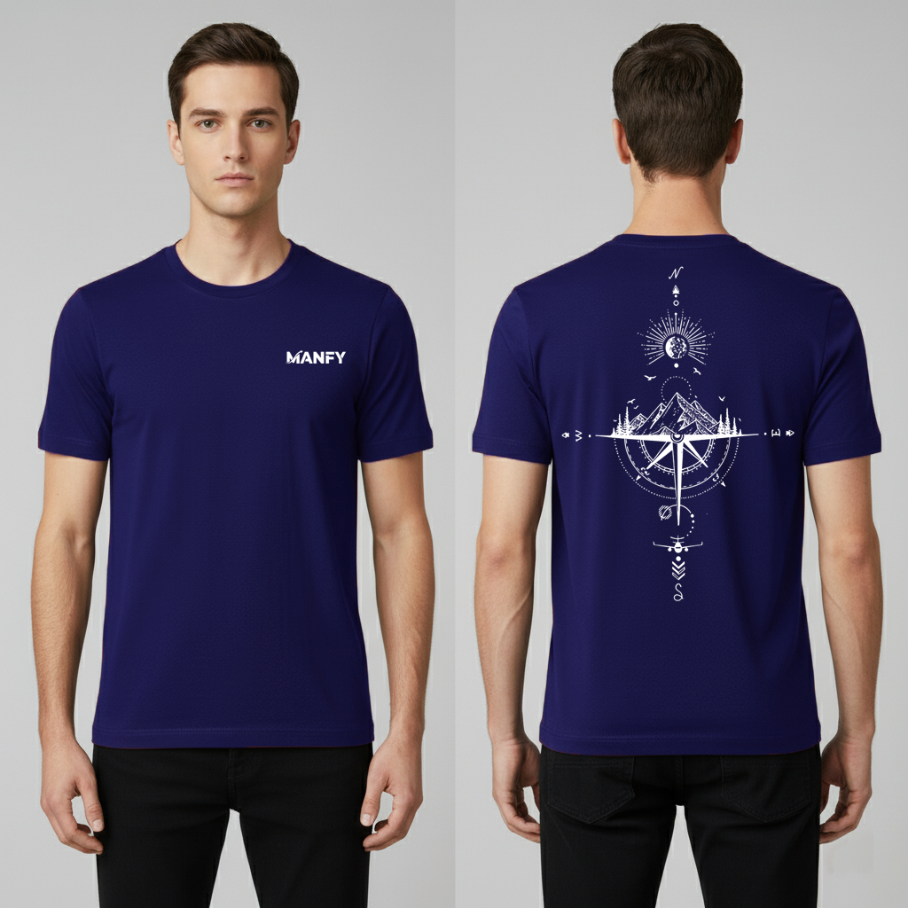 Explore seu lado aventureiro com esta camiseta preta essencial. Com um design discreto e moderno na frente, trazendo a marca "MANFY", a peça surpreende com uma estampa impactante nas costas. A arte detalhada de uma bússola e montanhas inspira viagens e novas jornadas. Perfeita para quem tem um espírito livre e busca estilo e conforto no dia a dia.